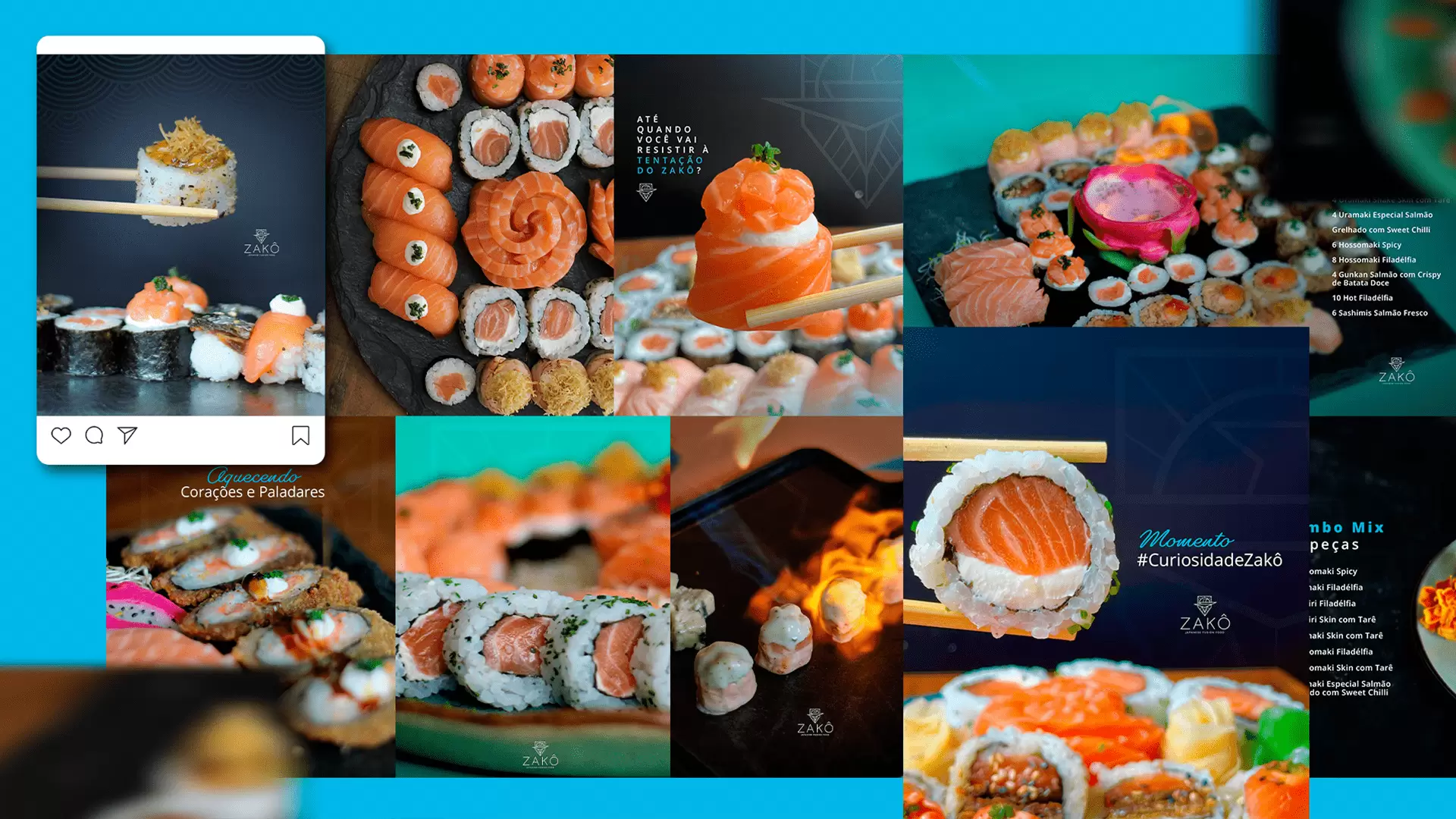 The new visual identity positioned Zakô Sushi as a benchmark in innovative Japanese cuisine. With a bold, unconventional aesthetic—breaking away from the typical red and orange tones—the brand became instantly recognizable.